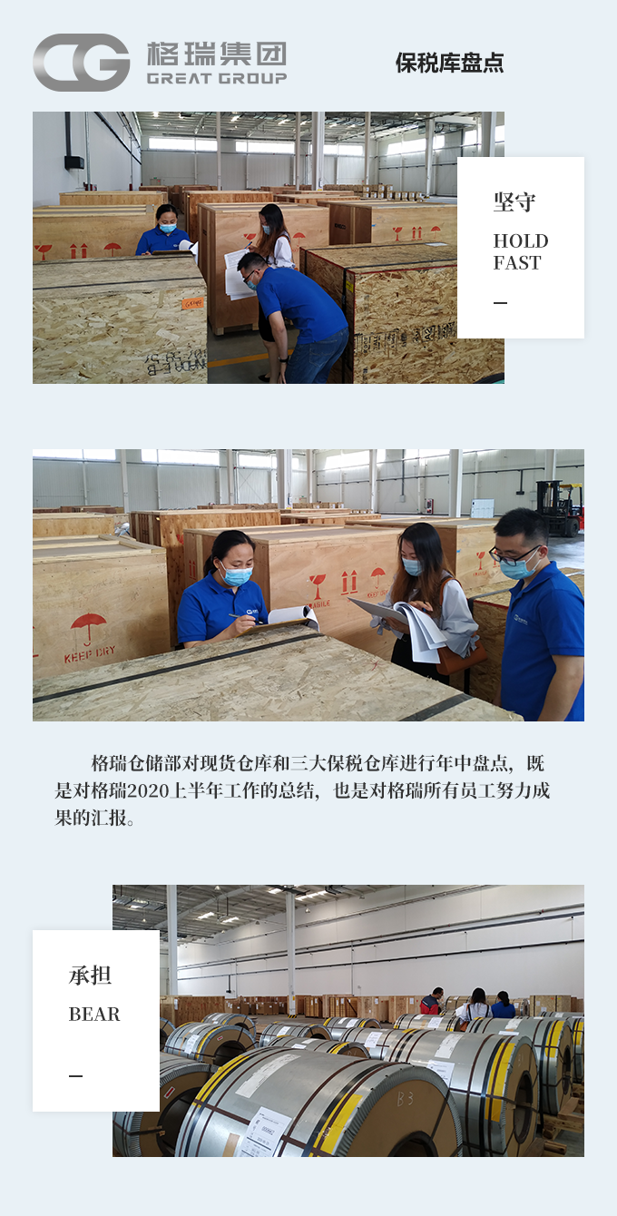 伴隨著疫情起伏的上半年,格瑞也承受著國內、國外疫情影響的雙重夾擊,國內疫情嚴重時無法復工,國外疫情導致交貨期延長、航運拖班,即便如此格瑞也在咬牙堅守著,承擔著,努力著,為自己負責也為社會盡責。一年過半,格瑞倉儲部對現貨倉庫和三大保稅倉庫進行年中盤點,既是對格瑞2020上半年工作的總結,也是對格瑞所有員工努力成果的匯報。